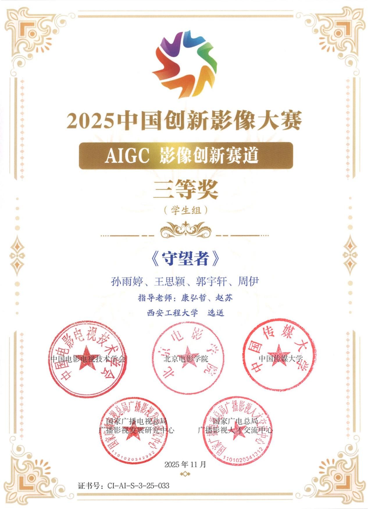 12月16日,纪念电视诞生一百周年系列活动暨首届创新影像大会在北京盛大启幕。活动现场,2025年中国创新影像大赛获奖名单正式揭晓,色情视频 选送的AIGC短片《守望者》凭借新颖独特的创意表达、精湛扎实的技术呈现,在众多参赛作品中脱颖而出,成功摘得AIGC影像创新赛道(学生组)三等奖。